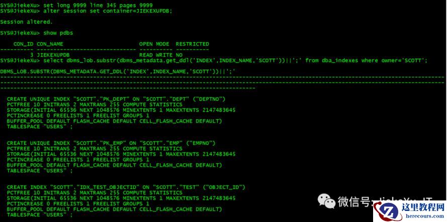 --业务用户conn jieke/jiekexu123select dbms_metadata.get_ddl('INDEX',u.object_name) from user_objects u where object_type='INDEX';