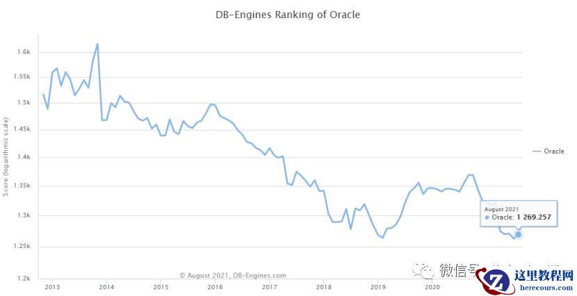 (Oracle 自 2013 年以来的排行趋势图)
