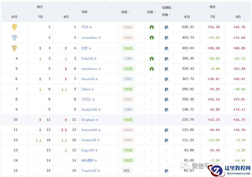 2021年7月国产数据库排行榜:openGauss高歌猛进,GBase持续下跌