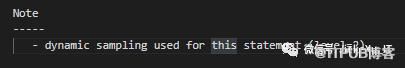 最后 Note 部分,执行计划的额外补充信息,是否动态采用(dynamic sampling)、是否 Cardinality Feedback、是否 SQL Profile 等等。