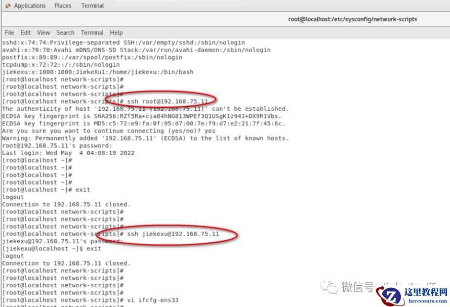 [root@localhost ~]# cd /etc/sysconfig/network-scripts/[root@localhost network-scripts]# more ifcfg-ens33 TYPE="Ethernet"PROXY_METHOD="none"BROWSER_ONLY="no"BOOTPROTO="static"DEFROUTE="yes"IPV4_FAILURE_FATAL="no"IPV6INIT="no"NAME="ens33"UUID="12550792-de37-403c-b072-7e9e81c7f97b"DEVICE="ens33"ONBOOT="yes"USERCTL=noIPADDR=192.168.75.11GATEWAY=192.168.75.2NETMASK=255.255.255.0DNS1=114.114.114.114DNS2=8.8.8.8NM_CONTROLLED="no"