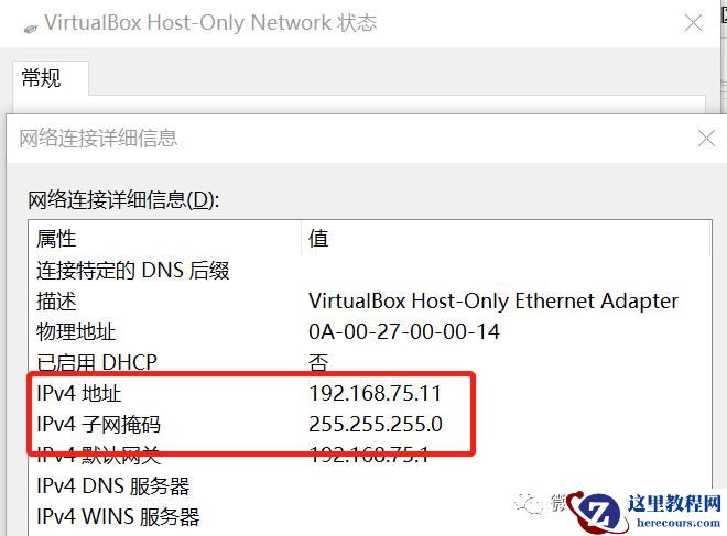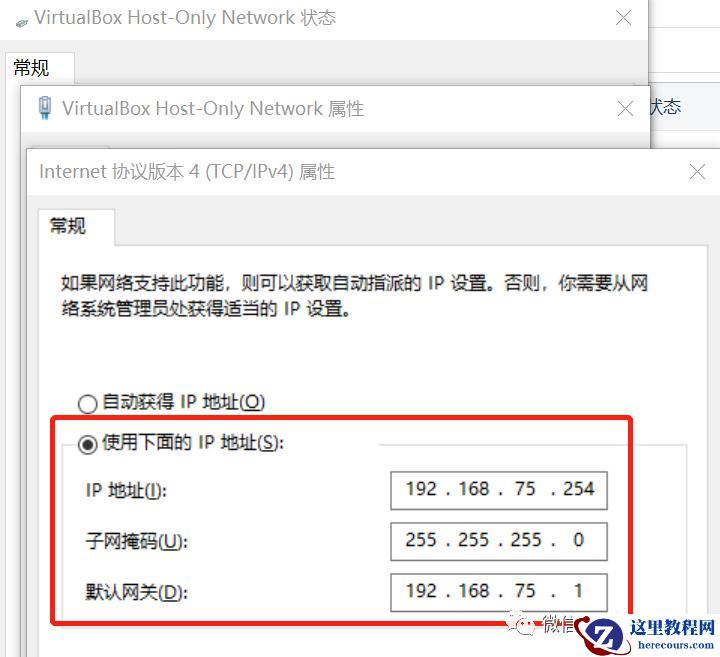将 VBOX 虚拟机地址修改为其他 IP 地址,例如 75.254 或者其他网段也可以,可根据实际情况设置。将 Linux 端 IP 地址改回 75 11 即可。