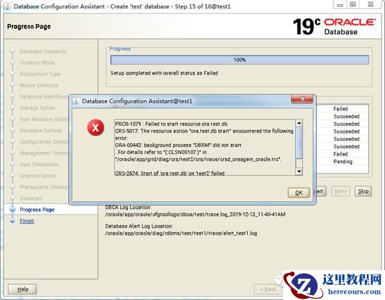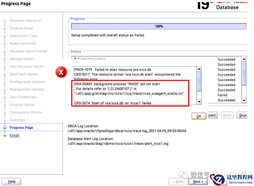 如果在DBCA期间抛出如下图所示错误,则可能是由于DefaultTasksMax值过小导致的。为了避免DBCA出现错误,提前修改该参数值。