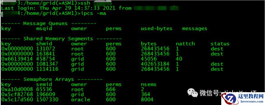 ipcs –ma 查看 Oracle 共享内存段