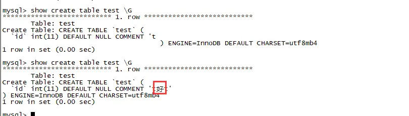 *************************** 1. row ***************************COLUMN_COMMENT: t好t1 row in set (0.00 sec)----- TODO:另外一个案例5.7/8.0mysql> show create table tm1123 \G*************************** 1. row ***************************