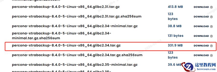 在这个数据为王的时代,无论是任何数据库,一定要做好备份,没有数据库备份,就是噩梦。 我们试着想一想, 在生产环境中什么最重要?如果我们服务器的硬件坏了可以维修或者换新, 软件问题可以修复或重新安装, 但是如果数据没了呢? 这可能是最恐怖的事情了吧, 我感觉在生产环境中应该没有什么比数据跟更为重要. 那么我们该如何保证数据不丢失、或者丢失后可以快速恢复呢? 只要看完这篇, 大家应该就能对MySQL中实现数据备份和恢复能有一定的了解。 在我维护的系统中,看到很多朋友和同事的数据备份使用mysqldump方式进行的,如果数据量比较小还可以,但是如果你的数据量已经超过1T的MySQL数据库,依旧使用逻辑备份,而且也不加single-transaction,虽然备份在凌晨开始进行,但是由于表比较大,且凌晨也有其他的定时统计任务运行,导致到上班时间备份依旧在运行,数据库负载非常大,应用系统响应超时,此时业务部门就会炸锅。领导也会直接站着身后盯着优化处理。 因此,对于数据量比较大的数据库还是采用Percona XtraBackup进行物理备份更佳。本文我们就探讨一下使用Percona XtraBackup进行MySQL8.4的备份。 我们从一个备份案例说起。 Xtrabackup 是由 percona 提供的 mysql 数据库备份工具,特点: (1)备份过程快速、可靠; (2)备份过程不会打断正在执行的事务; (3)能够基于压缩等功能节约磁盘空间和流量; (4)自动实现备份检验; (5)还原速度快。 一、 Percona XtraBackup备份案例 1. XtraBackup工具下载及部署从percona官网进行下载,官方地址:https://www.percona.com/downloads, 下拉找到Percona XtraBackup,选择对应的版本操作系统,然后按照自己操作系统的glibc版本选择对应的软件包下载即可。 glibc版本查看