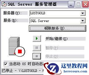 到网上下载SQL2000,并安装完毕。按照下面所示的图片打开SQL服务管理器点开始/继续左边的小图标启动SQL,刷新服务后就可以看到SQL启动了。