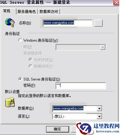 展开控制台的根目录-->安全性,选择登陆,右击,我们创建新的登陆,弹出SQL Server登陆框,按照下图所展示的那样填写。再打开数据库访问,选择刚才新建这个数据库,在下面的复选框里选中public和db_owner,确定后输入确定密码就OK了。