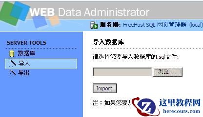 4用SQL网页管理器导入备份文件。这种办法需要先安装一个web界面的SQLServer管理器,类似于管理MySQL的PHPmyadmin,应该网上有下载的。下面是截图: