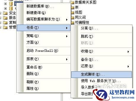 拷贝生成的sql语句选择服务器的数据库。右键新建查询-->把第一步生成的语句拷贝进去执行。
