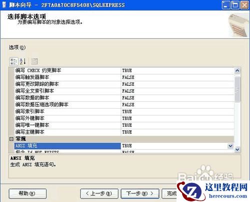 5按向导选择需要导出的数据库下一步到“选择脚本选项” 选择需要生成的类型,注意“为服务器版本编写脚本”处选择对应的脚本。