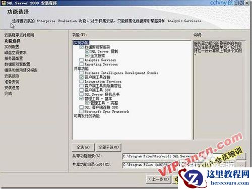 35选择安装的功能,SQL数据库和管理工具