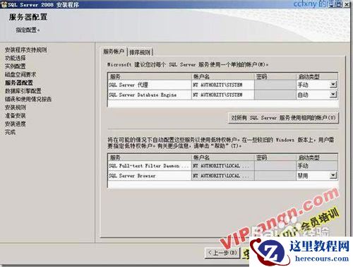 41选择服务账户,如图选择的是本地系统账户