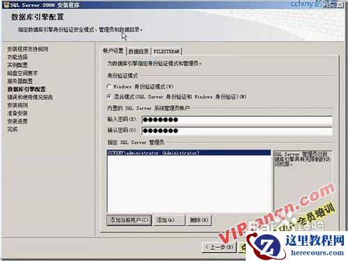 43验证模式:sql和本地模式两种,输入密码,另外添加管理员,可以添加本地组或者当前用户