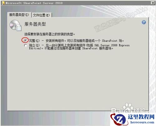4这里我们选择安装为服务器,即会切换到服务器的安装类型界面,建议选择“完整”版: