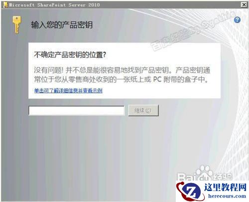 正确安装好组件后,可以开始安装SharePoint 2010了。安装程序检查完成后在开始安装前还需要输入有效的Key: