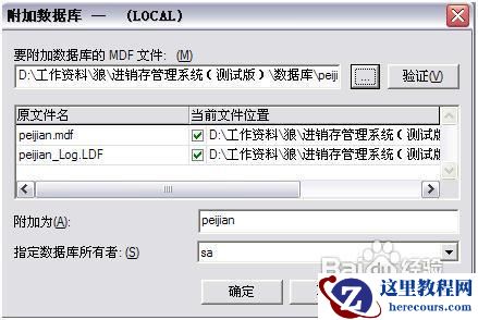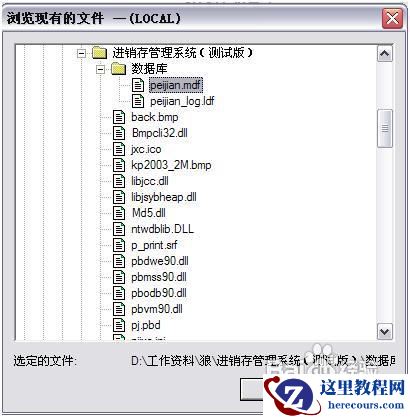 点击图标出现(如图十九)对话窗口,找到存放进销存软件的目录,依次打开“进销存管理系统(测试版)” →“数据库”选中“peijian.mdf”点击“确定”后出现(图二十一)所示窗口,再次点击“确定”,当出现(图二十二)所示窗口时,说明友诚进销存软件的数据库已经顺利安装到您的电脑中,您可以正常使用友诚进销存软件了。