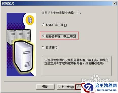 88.出现“安装定义”对话窗口(如图八),选择“服务器和客户端工具”并选择“下一步”