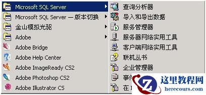1.点击“开始”菜单→“所有程序”→Microsoft SQL Server(如图十六),选择“企业管理器”(如图十七)