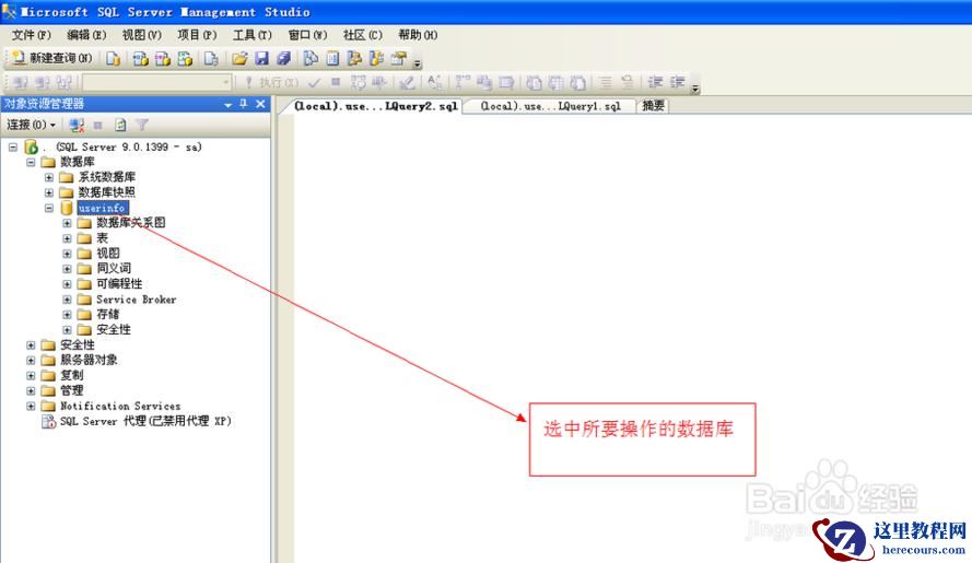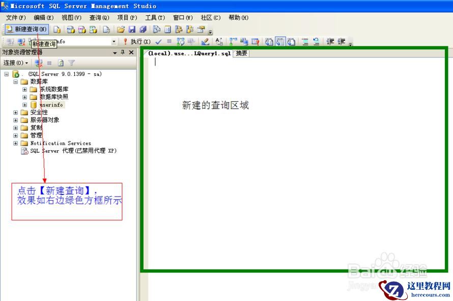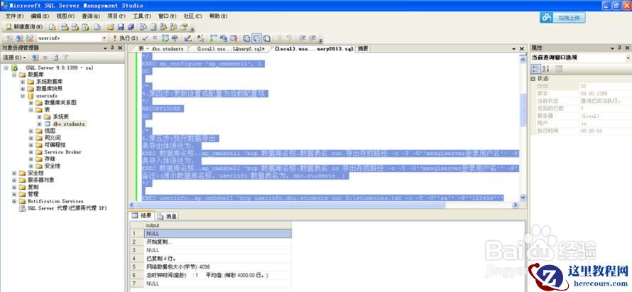下边就在【新建查询的区域】演示:将选中的数据库:userinfo 下的数据表dbo.students里边的数据导出,导入。