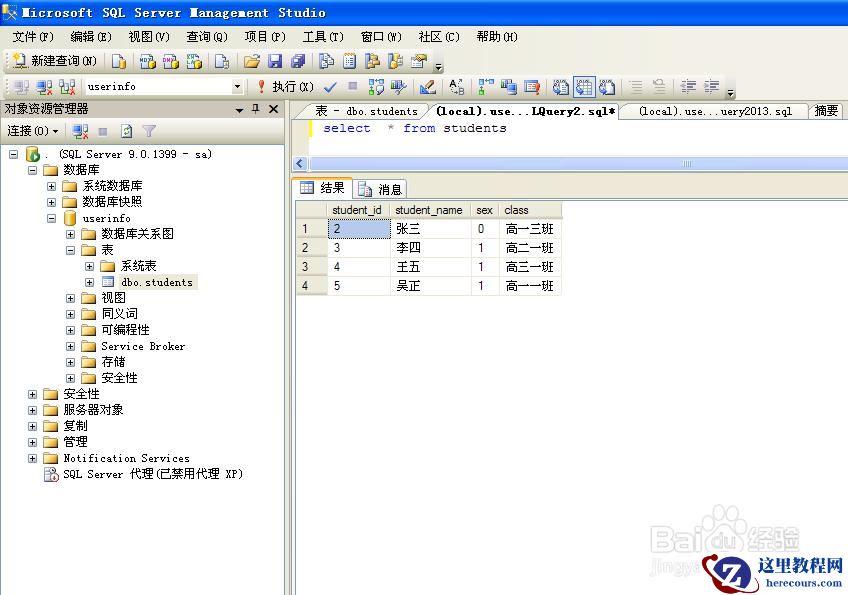 备注:(演示数据库名称:userinfo 数据表名为:dbo.students )*/