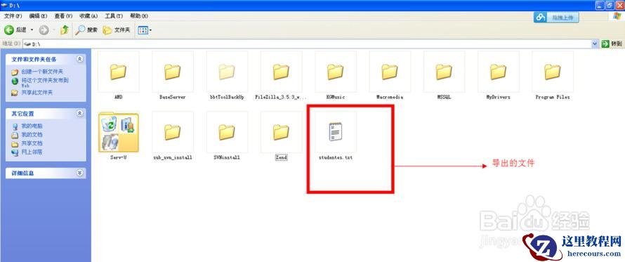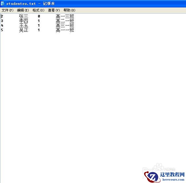 /*然后我们到D盘去查看,发现有个students.txt文件,打开之后一对比,完全正确。*/