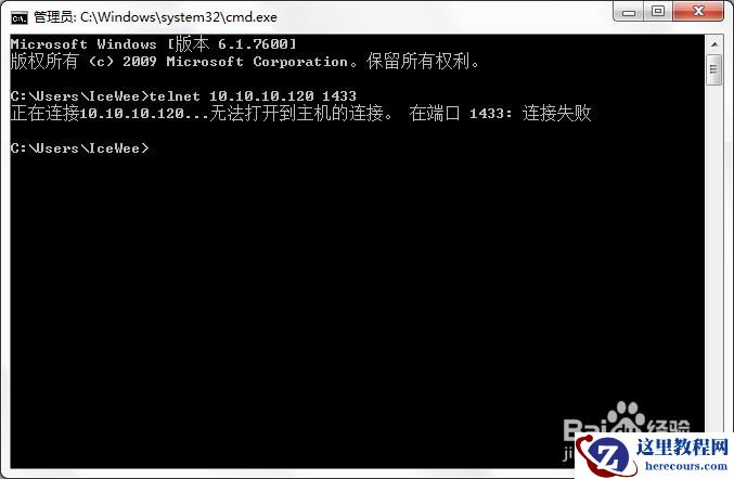 命令格式:telnet 数据库IP 1433