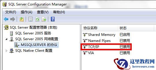 开始-》Microsoft SQL Server 2005-》配置工具-》SQL Server Configuration Manager