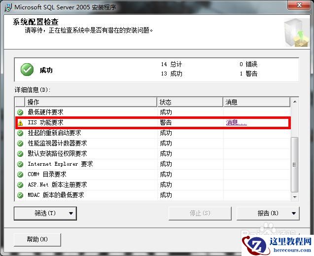 如果我们不启用IIS功能,在后续安装SQL Server时会遇见如图画面