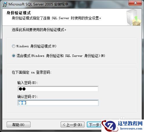 《重点》上面因为其他程序也可能连接数据库,所以选择“混合模式”,并键入sa密码