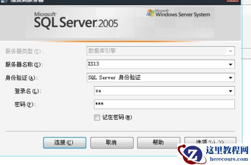 13这时候进入了登陆界面。在身份验证里选择SQL Server身份验证。登陆名写成sa,再填上密码。就可以登陆了。