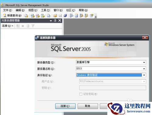 打开SQL Server 2005,就会看到登陆页面,选择好自己的服务器名称。选择windows身份验证。然后连接即可登陆数据库。