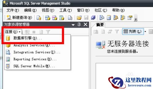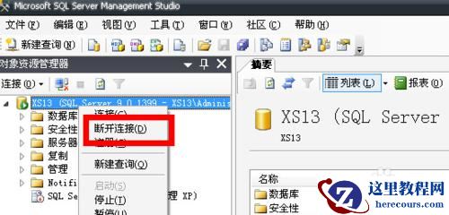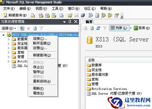 10打开主页面SQL Server 2005主页面。在如图所示的位置点击鼠标右键重新启动。