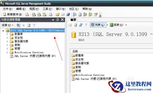 2进入数据库后,在下图所示,箭头指示的位置。使用鼠标,点击鼠标右键。进入服务器属性。