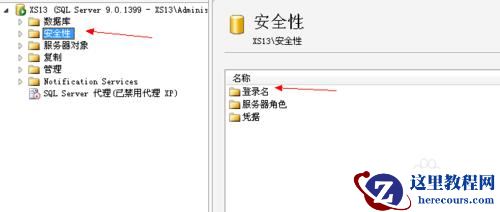 4在SQL Server 主页面打开安全性,就会看到右边的登陆名。