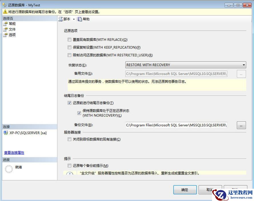 Server通过LSN来区分日志的记录),并尚未对尾部日志备份,它会提示并要求你必须先做尾部备份。