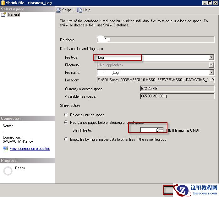 第二个方法就是采用了一个比较死的办法。采用 分离,然后再删除日志文件再附加来生成一个新的日志文件。