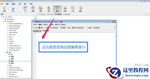 5在工具栏可以看到“表”,"视图",“查询”等,这里我们为了写sql语句,和存储过程,所以选择了查询