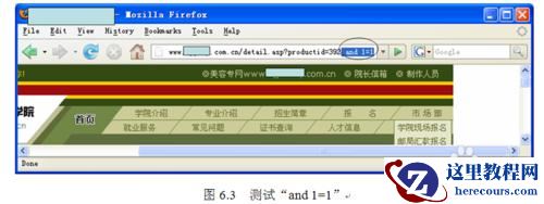 3第2步:测试“and 1=1”。如图6.3所示,在浏览器地址栏中http://www.xxx.com.cn/detail.asp? productid=392后面加“and 1=1”,按Enter键后,服务器返回到正常页面。