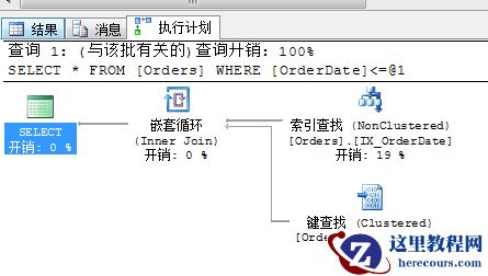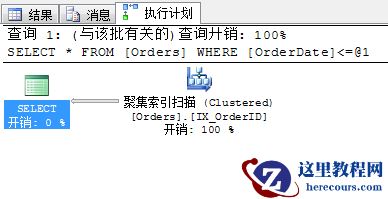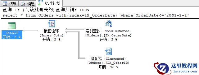 4.5 执行 select * from Orders with(index=IX_OrderDate) where OrderDate<='2001-1-1' 查询开销及查询计划