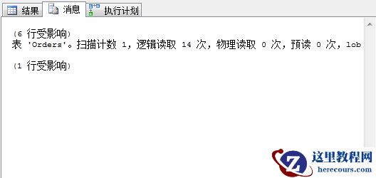 可以看到成功使用了在OrderDate上面建立的索引IX_OrderDate,逻辑读次数为14,返回行数6行