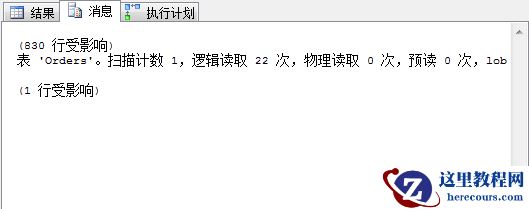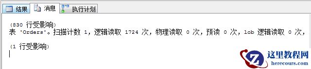 同样我们强制使用了索引IX_OrderDate,查询条件进行改变,逻辑读达到了1724次,返回行数数830行