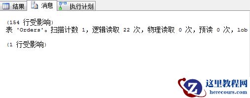 可以看到查询条件和4.3完全一致,我们强制使用了IX_OrderDate,返回记录数和4.3完全一致,但逻辑读达到了328次,返回行数154行
