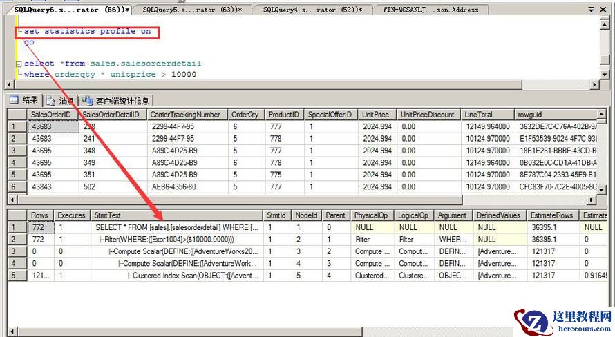 执行:SET STATISTICS IO ON
