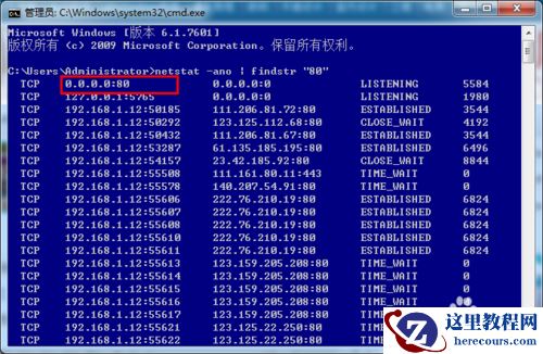 netstat -ano | findstr "80" (注80是你想要看查看的端口号)
