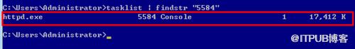 tasklist | findstr "5584"(注 5584是进程的id即PID)
