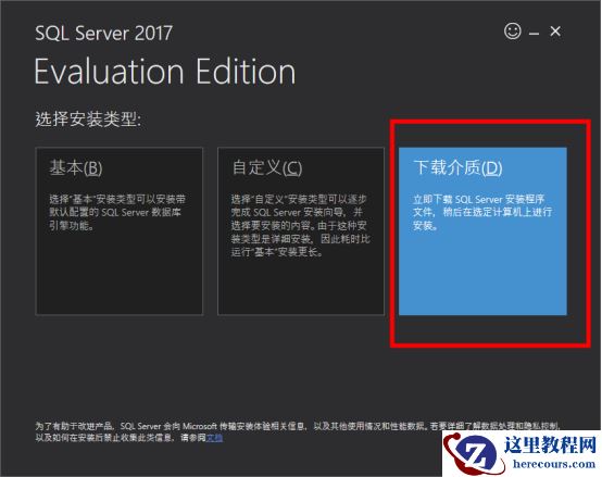 SQLServer2017-SSEI-Eval.exe运行该exe文件 选择下载介质