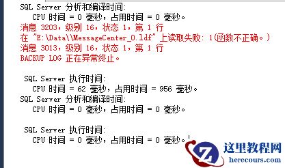 在 "E:\Data\\MessageCenter_0.ldf" 上读取失败: 1(函数不正确。)