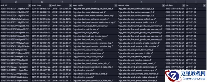 (2)根据结果可以分析得出每张表张表的输入表输出表以及连接的作业ID,即每张表的血缘关系。