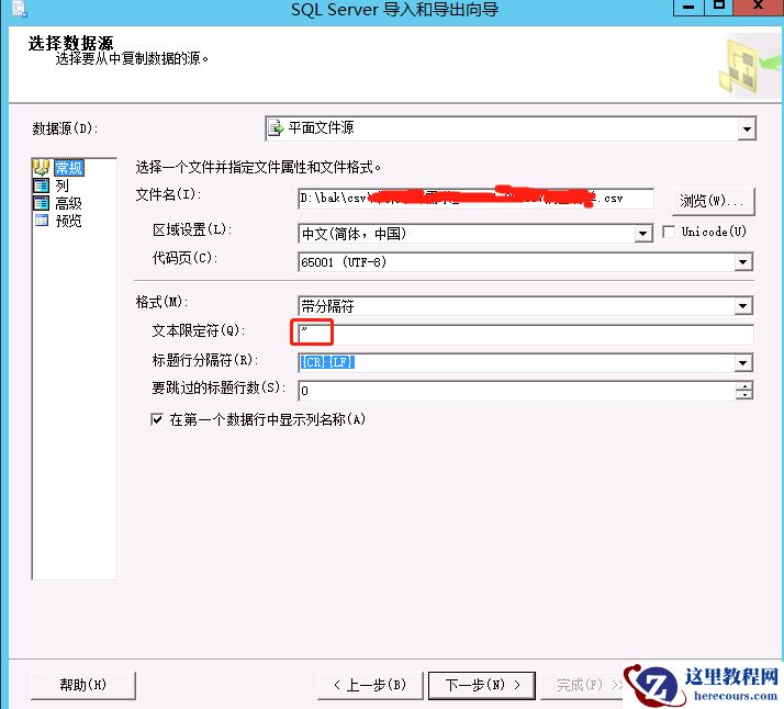 把大CSV文件导入SQLServer:为了防止导入有“,可以在文本限定符里面输入“